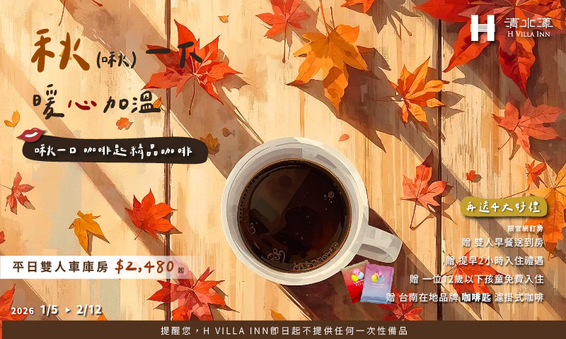 寬敞挑高的空間,以深色木質展現穩重質感,提供台南旅遊簡介與住宿諮詢。