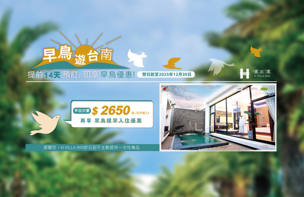 提前14天預訂 即享早鳥優惠 活動日期:即日起至2025年12月30日 官網獨家限定 早鳥住宿限時下