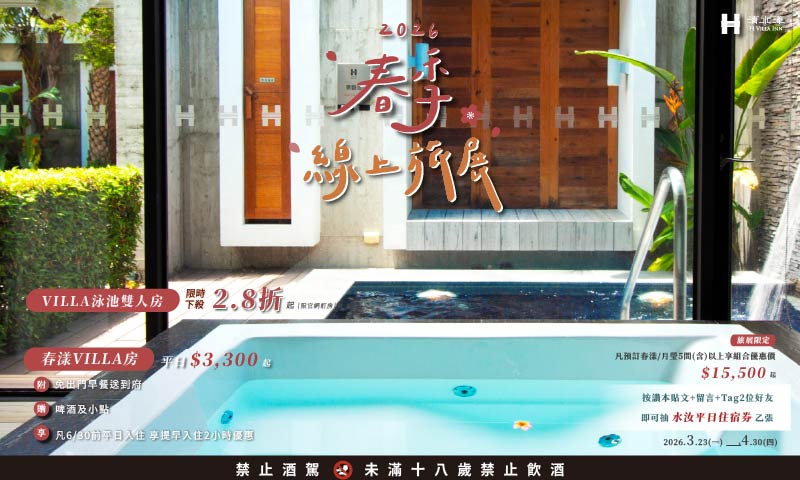✅ 春漾 VILLA (乙晚/雙人) |平日 $3,300 起 ( 含早餐,依房型人數提供 )